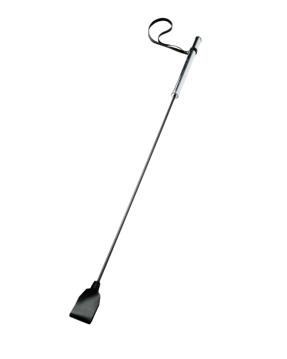 Классический стек с гибкой, но прочной основой. Ударная часть выполнена из натуральной кожи. На металлической рукояти закреплена ручка-петля для дополнительной фиксации изделия на запястье. Длина ручки - 20 см. Размеры шлепка - 7х5 см.
