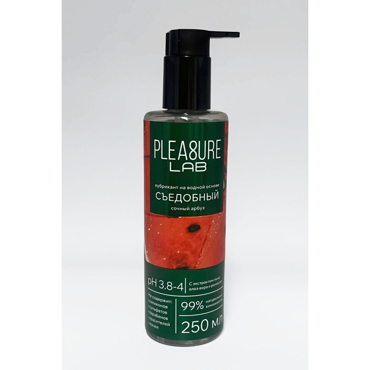 Лубрикант на водной основе Pleasure Lab с сочным ароматом спелого арбуза дарит свежесть и легкость в интимные моменты. Его нежный вкус дополнительно усиливает удовольствие, превращая близость в по-настоящему чувственное наслаждение. Формула основана на натуральных компонентах. Экстракт алоэ вера интенсивно увлажняет и успокаивает кожу, устраняя раздражение. Экстракт ромашки обладает выраженными противовоспалительными свойствами, обеспечивая дополнительную защиту и комфорт. Экстракт льна, насыщенный омега-3 жирными кислотами, глубоко питает и смягчает кожу, предотвращая сухость. Не содержит силиконов, сульфатов, парабенов, красителей и масел. Смазка с оптимальным pH соответствует естественному балансу слизистых, поддерживает здоровую микрофлору и предотвращает воспаления. Идеальна для чувствительной кожи, обеспечивая комфорт и защиту.